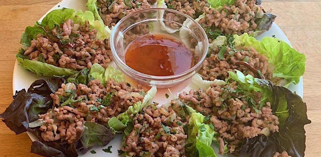 - Lava las hojas de los cogollos sécalas y pon encima la carne picada cocinada